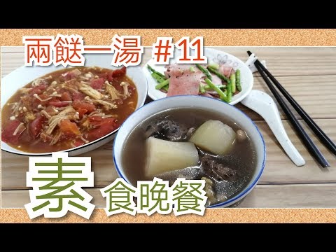 兩餸一湯 素食晚餐 | 花生眉豆 節瓜湯 | 鮮茄金針菇 | 蘆筍炒素煙肉